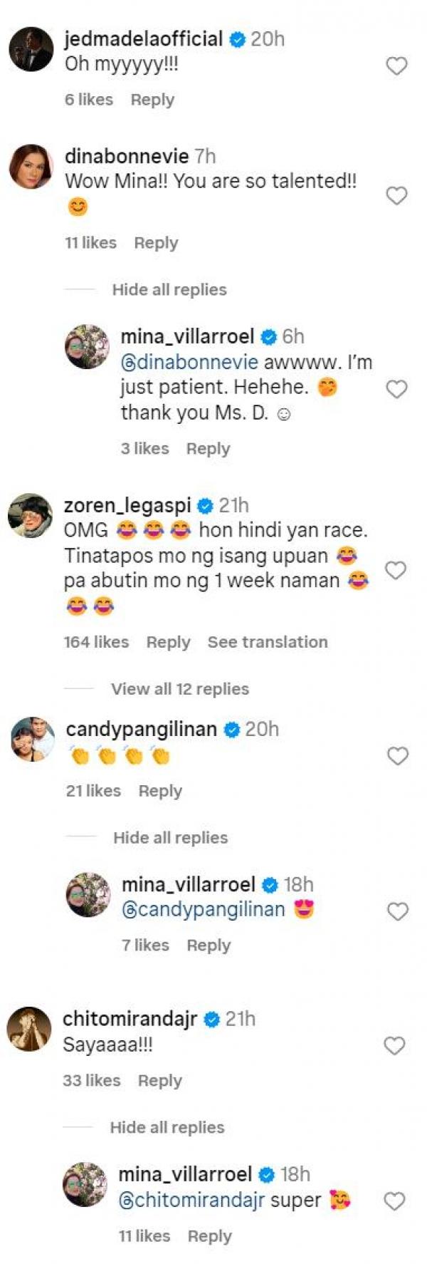 Several celebrities commented on her post including Miss Dina Bonnevie who said she is so “talented.”