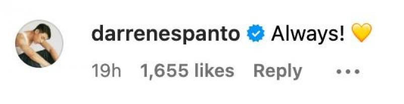 To which, Darren sweetly responded with, “Always!” and a yellow heart emoji.