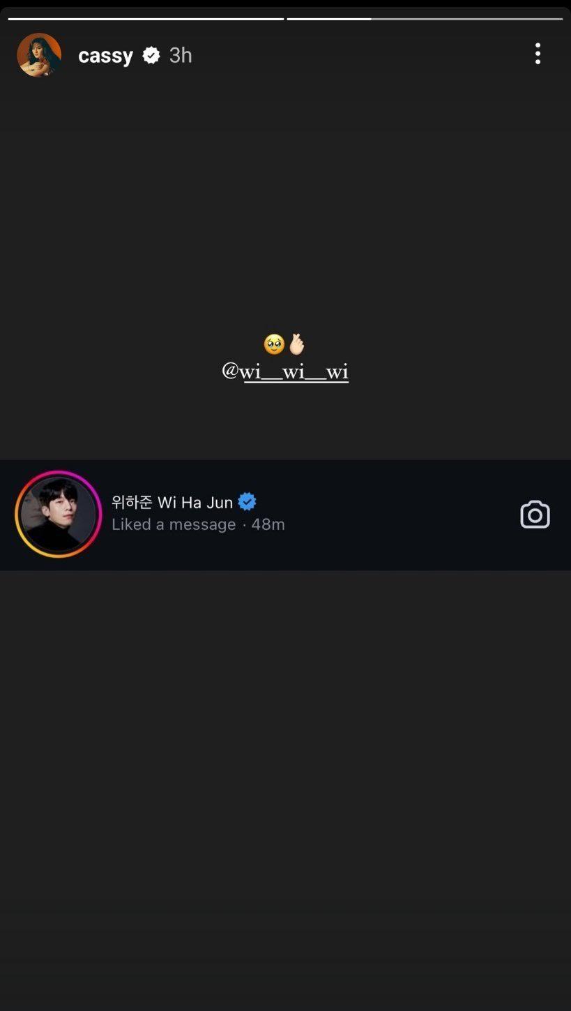 In an Instagram Story that has now expired, Cassy shared a screenshot that showed Squid Game star Wi Ha-Joon liking a message from her. Cassy did not share what the message was, but did include a finger heart and a teary-eyed emoji to her Instagram Story.