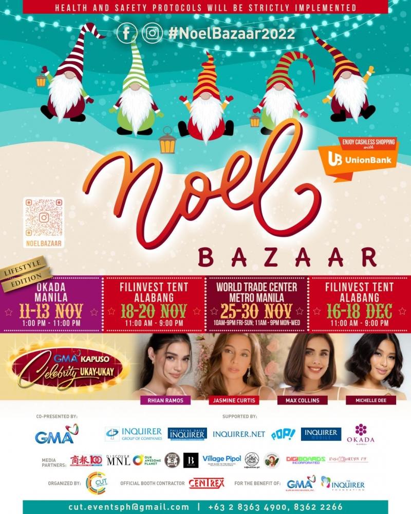The Noel Bazaar 2022 series is co-presented by GMA Network and is supported by Inquirer Group of Companies, Philippine Daily Inquirer, Inquirer.Net, Pop!, Inquirer Mobile, UnionBank, and Okada Manila. Other media partners include WhenInManila.com, DiscoverMNL, Village Pipol, Buzzsetter, Our Awesome Planet, Travelokaloka, Your Tita Ja, DiscoveReynPH, Chinese Commercial News, and Digiboards, Inc.