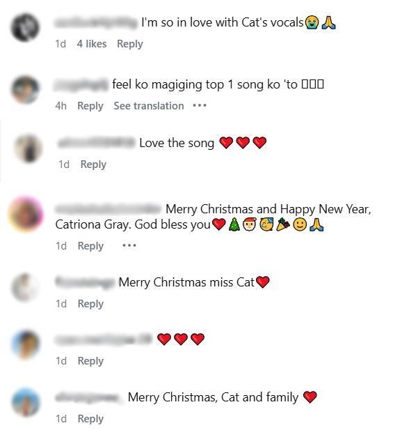 Many fans of Catriona reacted to her Christmas Day post and lauded her amazing vocals on her new song.