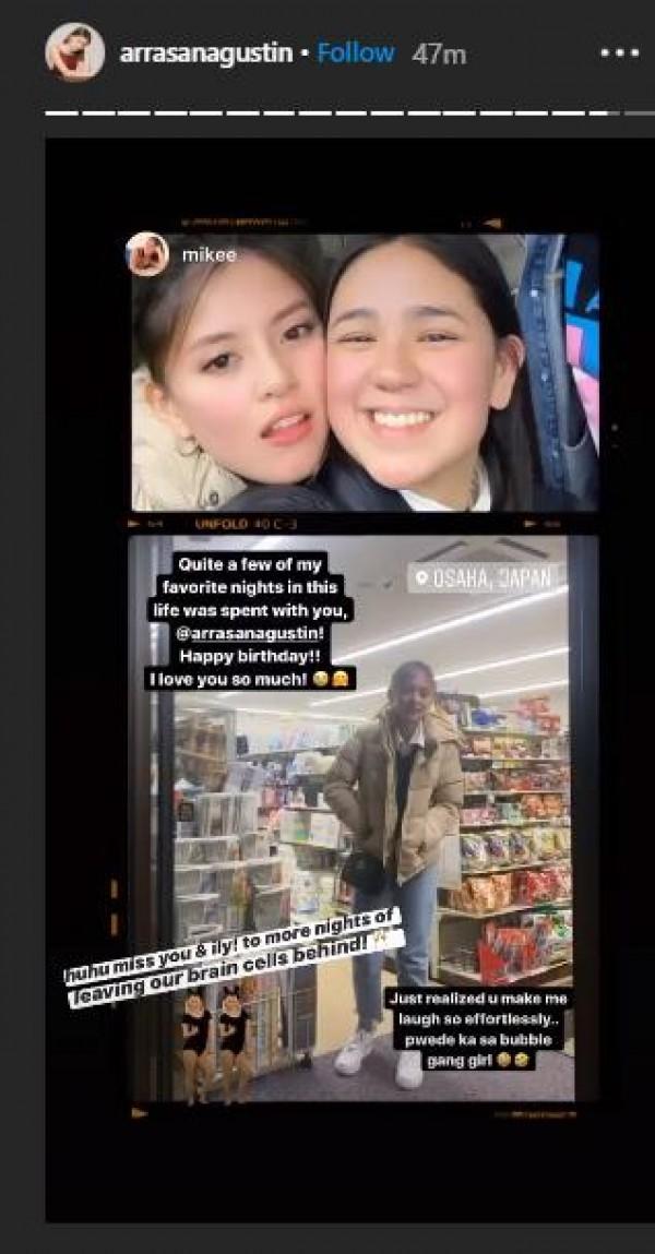Mikee shared on her Instagram Story, "Quite a few of my favorite nights in this life was spent with you @arrasanagustin Happy Birthday i love you so much!"