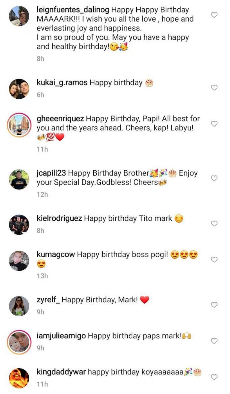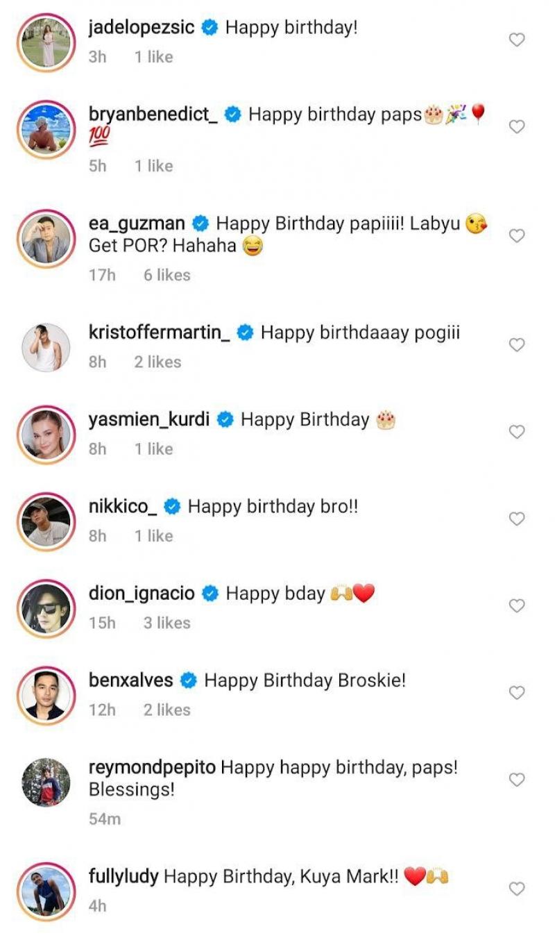 Bukod sa netizens, nagpaabot din ng pagbati ang ilan sa malalapit na kaibigan ni Mark sa showbiz tulad nina Mel Martinez, Jade Lopez, Bryan Benedict, Edgar Allan Guzman, Kristoffer Martin, Yasmien Kurdi, Nikki Co, Dion Ignacio, at Benjamin Alves.