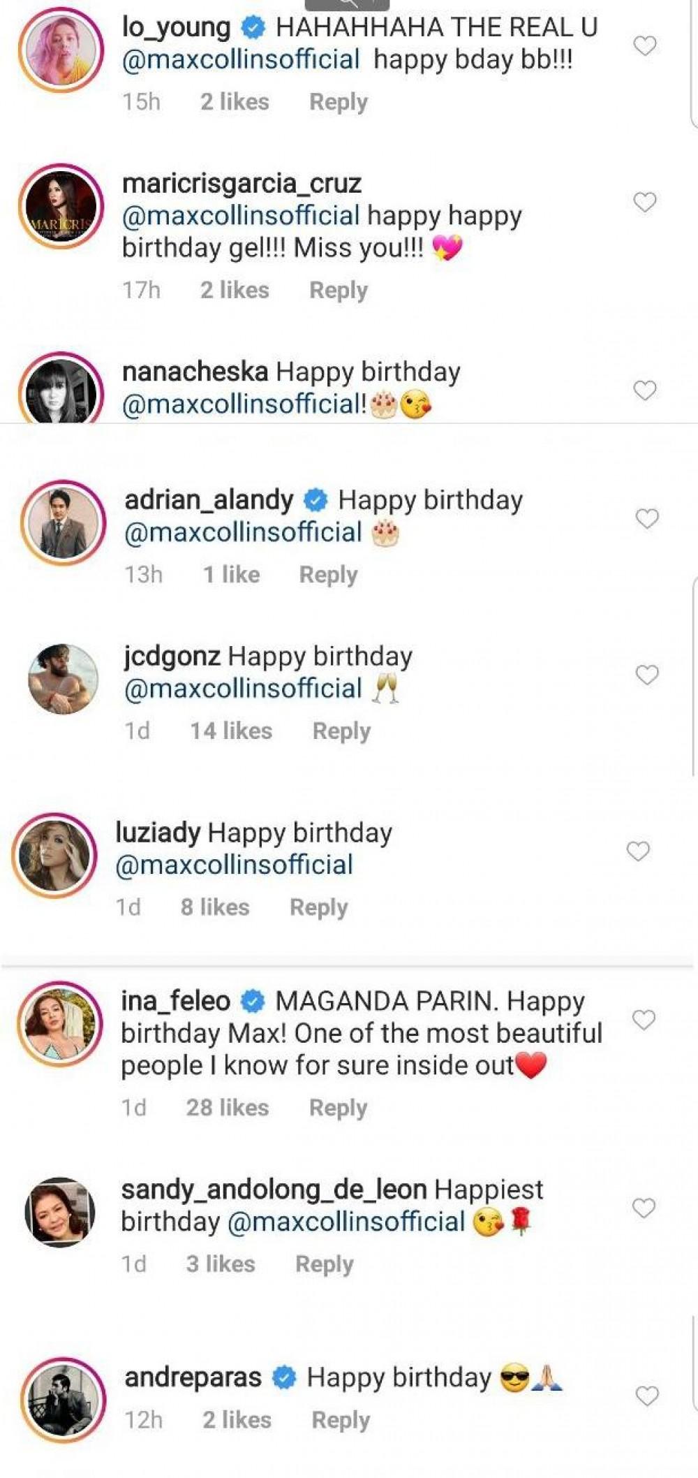 Several celebrities also took to social media to send their birthday greetings for Max Collins including Lovi Poe, Lauren Young, Ina Feleo, and Andre Paras.