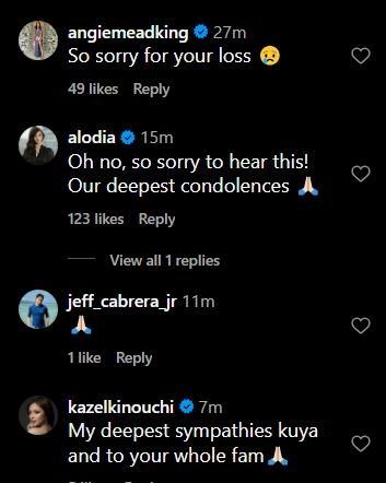 Naghatid din ng kanilang pakikiramay ang negosyanteng si Angie Mead King, model at cosplayer na si Alodia Gosiengfiao, at si Kazel Kinouchi ng My Father's Wife.