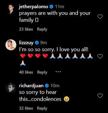 Ilan pa sa mga personalidad na nakiramay ay si Mister Pilipinas Global Jether Palomo, ang stylist na si Liz Uy, at hot at actor na si Richard Juan.