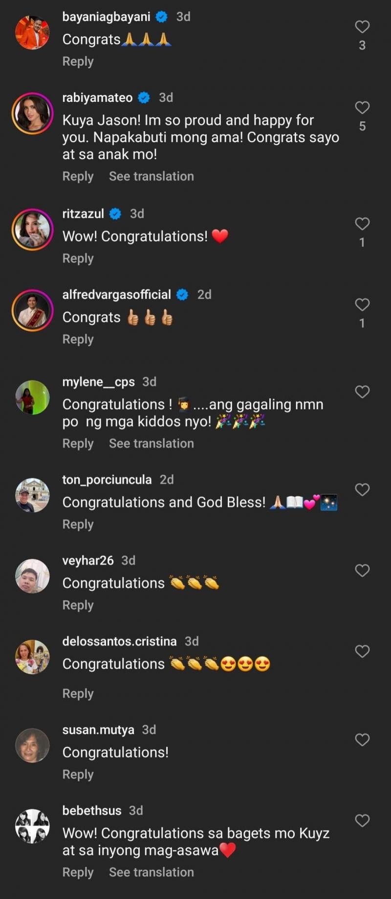 In the comments section, Jayson's daughter received lots of congratulatory messages from netizens and celebrities such as Alfred Vargas, Rabiya Mateo, Bayani Agbayani, and Ritz Azul.