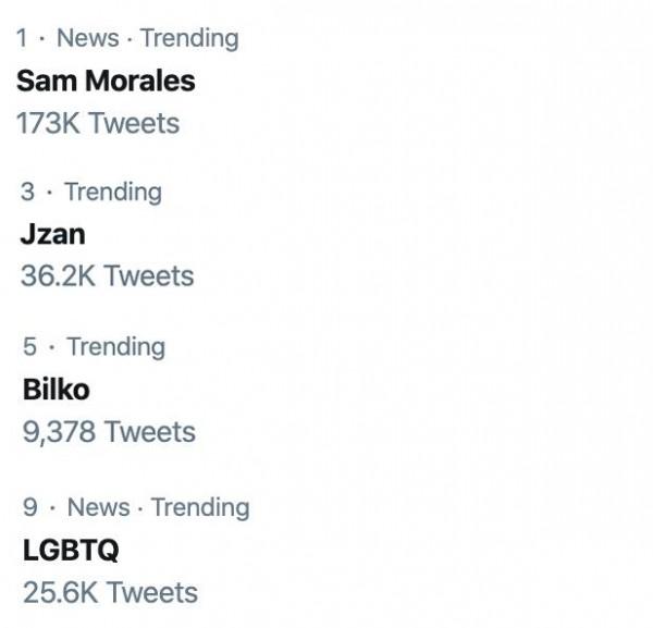 Less than 24 hours after she posted her story, the hashtags “Sam Morales,” “Jzan,” “Bilko,” and “LGBTQ” became trending topics on Twitter Philippines.