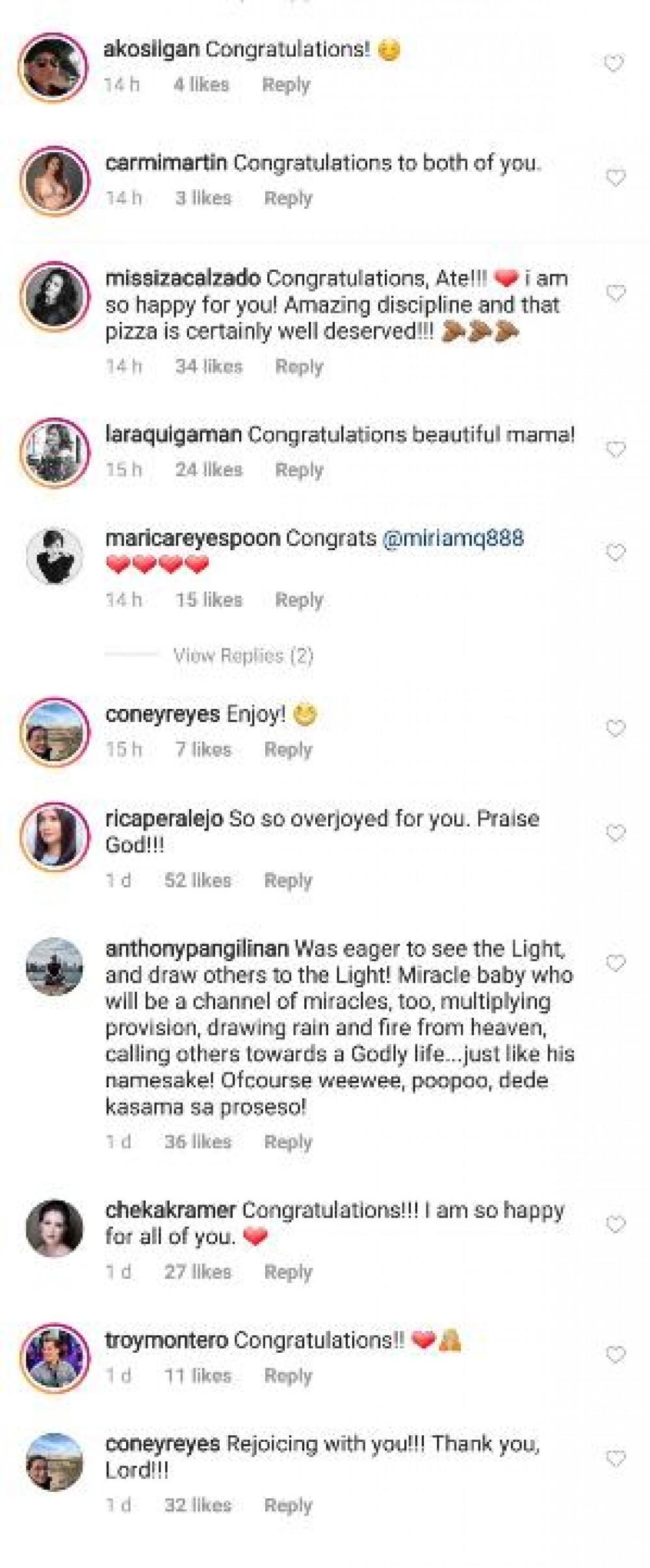 Celebrities also took to social media to congratulate Miriam and Ardy for their new blessing. Among them were Kapuso multi-awarded news personality Arnold Clavio and former Victor Magtanggol star Coney Reyes.