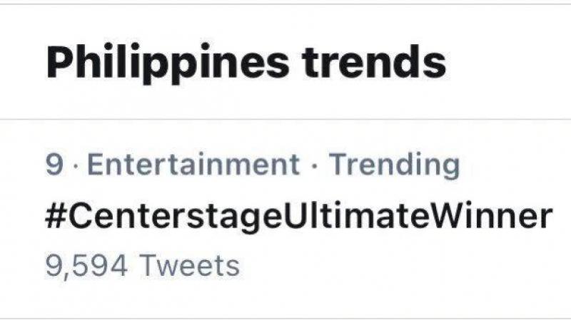 Isa sa mga trending topics sa Twitter Philippines ang #CenterstageUltimateWinner na nakakuha ng mahigit 9,000 tweets kagabi.