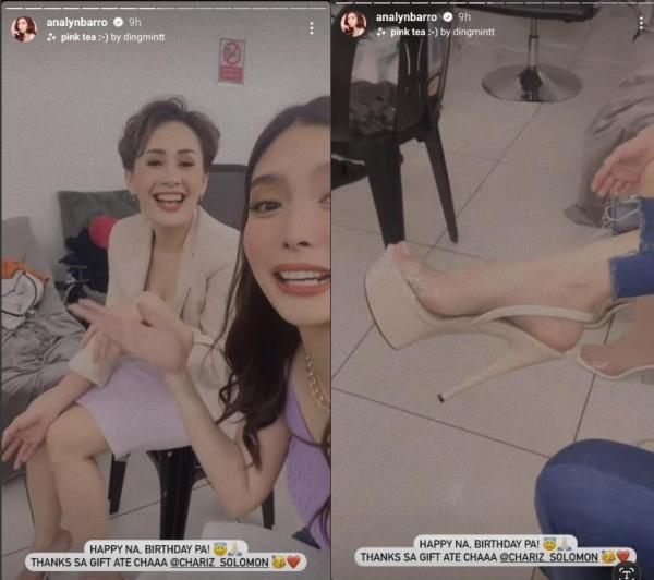 Kinilig din si Analyn nang sorpresahin siya ni Chariz ng isang brand new pair of stilettos para sa kaniyang special day. Sabi niya sa Instagram Story, “Happy na, birthday pa! Thanks sa gift Ahe Cha.”