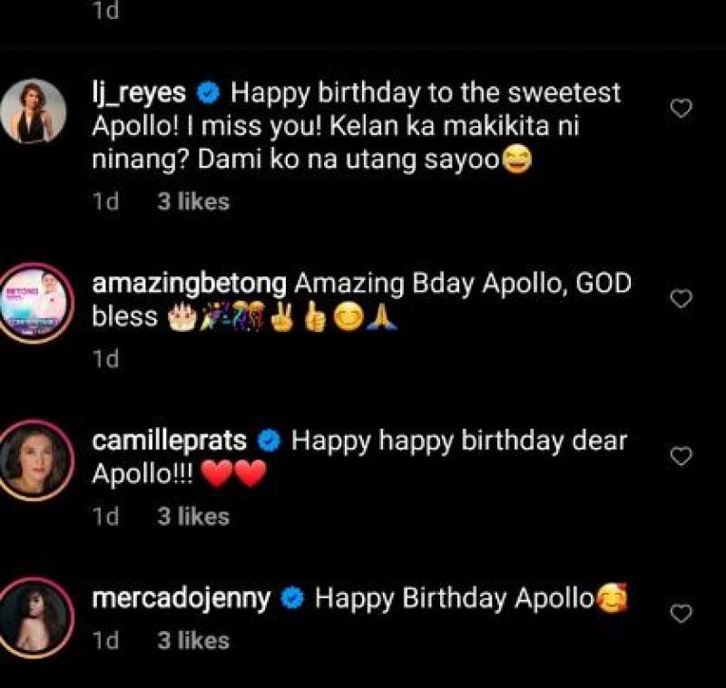 Several celebrities also sent their well-wishes for Apollo including his godmother LJ Reyes.