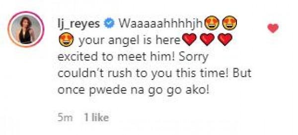 LJ wrote, “Waaaaahhh, your angel is here. Excited to meet him! Sorry couldn't rush to you this time! But once pwede na go go ako!”