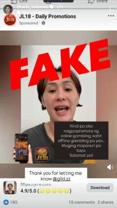 Chariz reiterated on her Instagram post, “Hindi po ako nagpopromote ng online gambling, kahit offline gambling pa yan. Maging mapanuri po tayo. Maraming salamat po!”