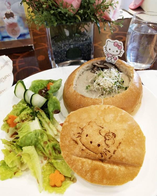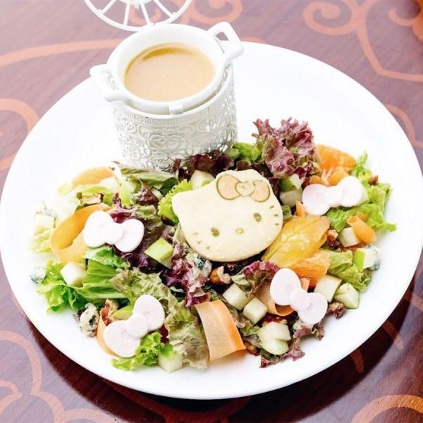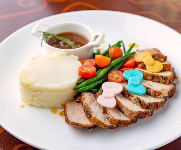 On the side, one will find a Hello Kitty-shaped mashed potato with French beans and cherry tomatoes.