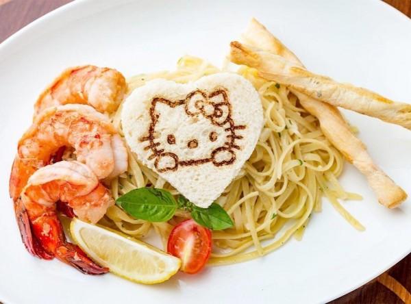 The restaurant's Shrimp Scampi served as the group's first entree. Shrimp Scampi is a popular dish made of seared shrimps on a bed of garlic and olive oil-infused linguini noodles. On top, is a heart-shaped toast with a Hello Kitty drawing inside.