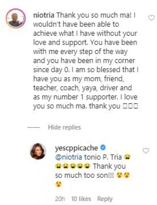 Nag-react naman si Nio sa heartwarming message ng kanyang nanay at nagpasalamat ito sa kanyang "number one" supporter.