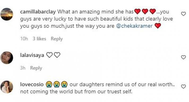 “What an amazing mind she has❤️❤️❤️...you guys are very lucky to have such beautiful kids that clearly love you guys so much,just the way you are @chekakramer ❤️” @camillabarclay wrote.