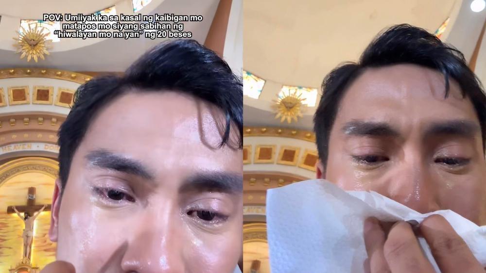 "POV: Umiiyak ka sa kasal ng kaibigan mo matapos mo siyang sabihan ng 'hiwalayan mo na 'yan' ng 20 beses," aniya.