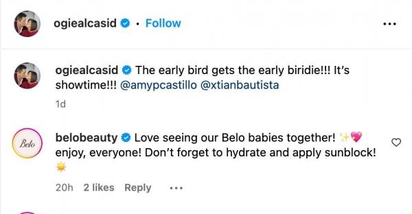 Belo Beauty's official Instagram account commented on the post and said, “Love seeing our Belo babies together! [E]njoy, everyone! Don't forget to hydrate and apply sunblock!”