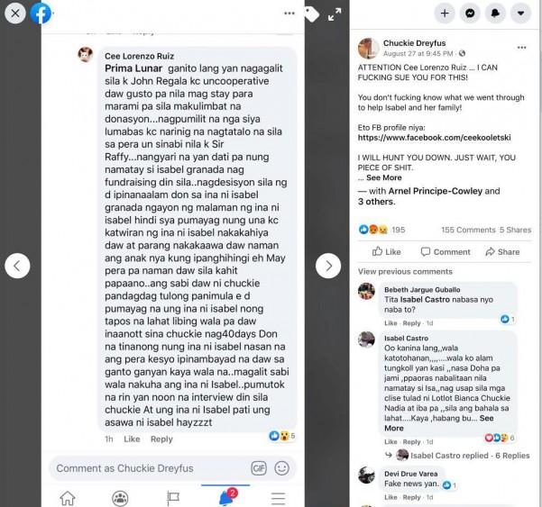 On Facebook, Chuckie called out a netizen who claimed that he didn't even bother to inform Isabel's family nor gave them the full amount after the wake.