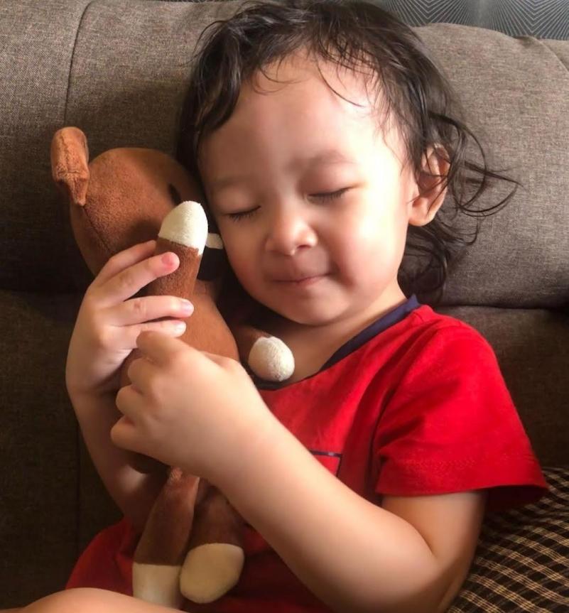 According to the celebrity mom, "My baby boy prefers to sleep this way.. hindi nagpapabuhat 'yan sa akin."