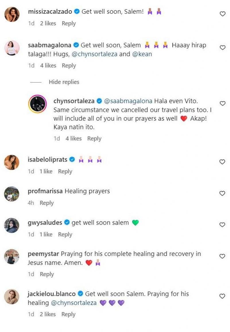 Several celebrities including Iza Calzado and Saab Magalona also expressed their well-wishes for Salem's speedy recovery.