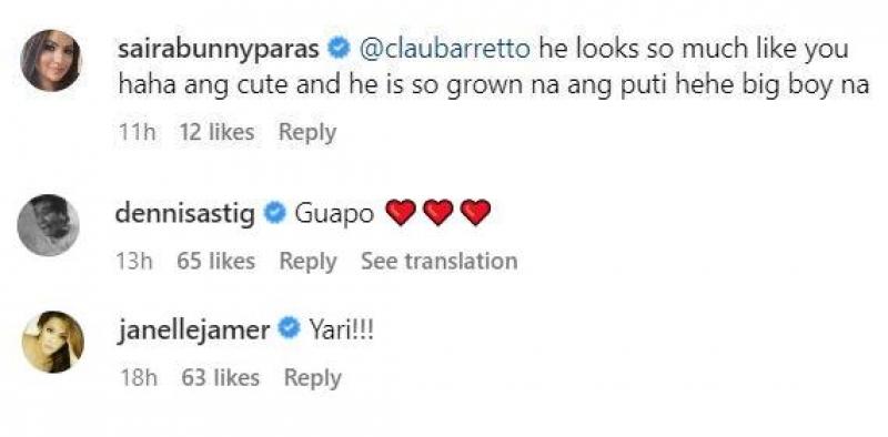 Former actress Bunny Paras said, “He looks so much like you haha ang cute and he is so grown na ang puti hehe big boy na.”
