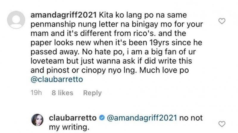 One netizen noticed what seemed to be a striking similarity in penmanship of Rico's supposed letter with Claudine's own letter for her mother. Also, the netizen observed that the paper, despite being over two decades old, looked fairly new.