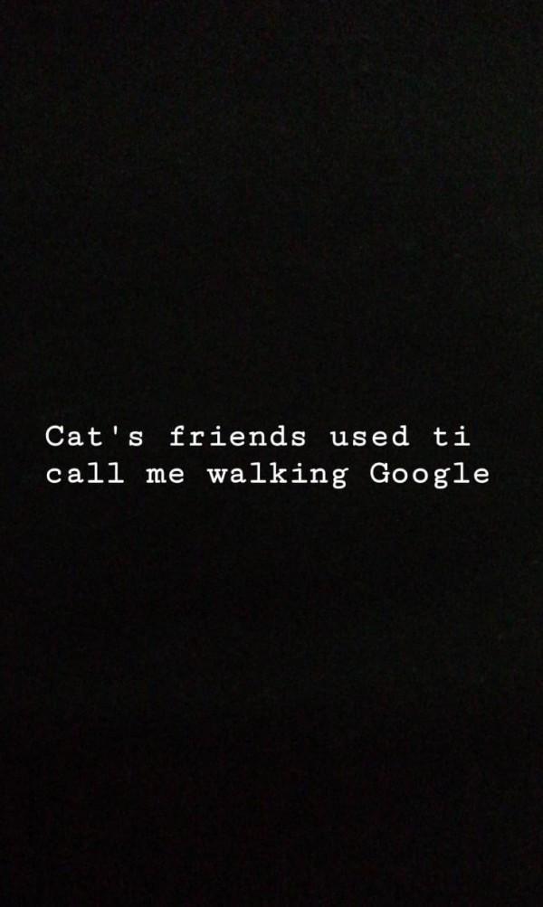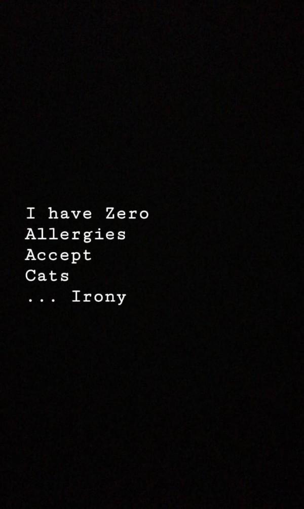 "Cat's friends used to call me walking Google," "I have zero allergies accept cats...irony," "Letter. Thanks Ex, "That's it proud of you...like actually."