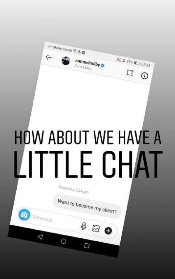 In his Instagram Story on Monday, July 13, the Fil-German model/actor/businessman shared a screenshot of his private message to Sam that reads, "Want to become my client?," in which the latter has yet to reply to.