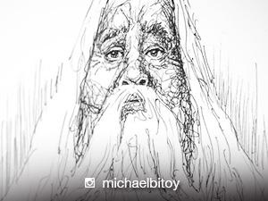 “I'm coming up with a book from Summit Media! Kicking off the countdown with this #15MinuteSketch of a Tata Lino caricature. #BubbleBibleByBitoy.”