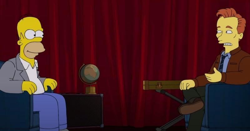 The back-and-forth between Conan and Homer was funny, with the latter even referencing a Simpson episode written by the talk show host back in the day.