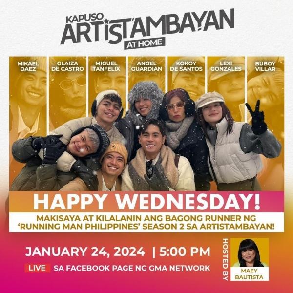 Samantala, puwede kayo makipagchikahan sa kuwelang cast ng Running Man Philippines, bukas dahil tampok sila sa Kapuso ArtisTambayan.