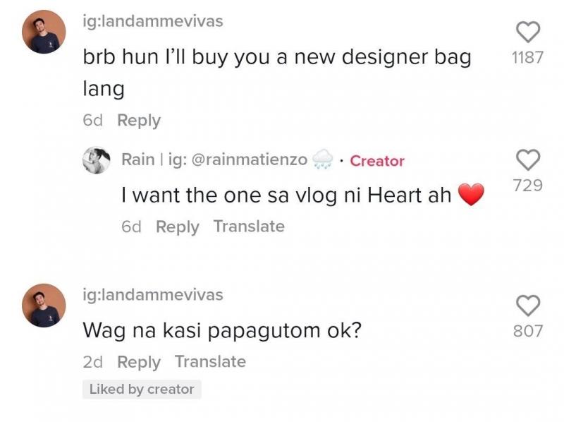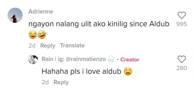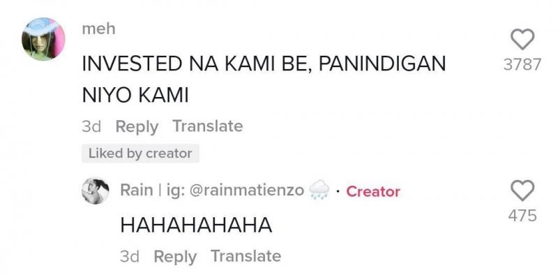 "Tee [Rain Matienzo] 'di pwede to, panindigan nyo kilig namin," mensahe ng isang fan.