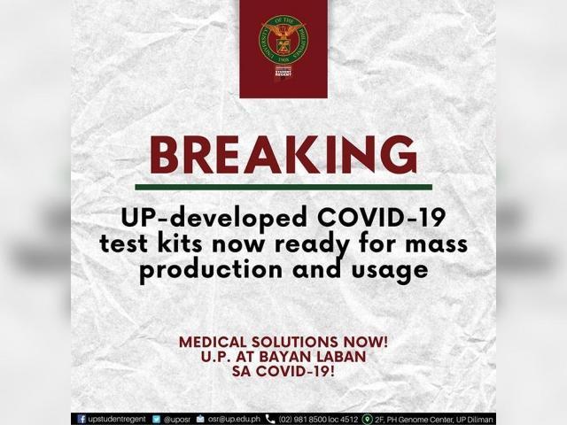 Test kits used to detect 2019 coronavirus disease (COVID-19) that were developed by University of the Philippines (UP) scientists are now ready for mass testing.