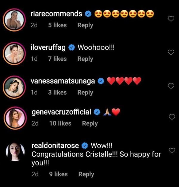 Several celebrities reacted to Cristalle's post and offered some words of encouragement.
