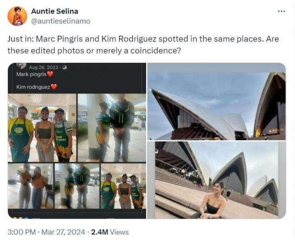 Ayon sa post sa X (formerly Twitter), "Just in: Marc Pingris and Kim Rodriguez spotted in the same places. Are these edited photos or merely a coincidence?"
