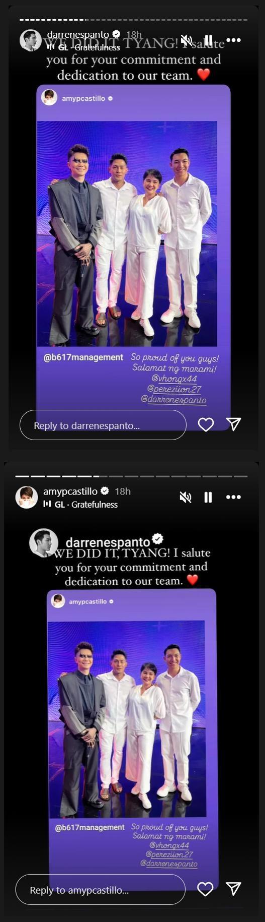 Post ng singer-actor sa Instagram Story, “We did it, TIYANG! I salute for your commitment and dedication to our team.”
