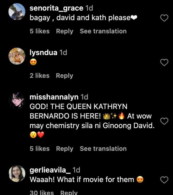 Multiple photos of Pambansang Ginoo David Licauco and Kapamilya star Kathryn Bernardo were uploaded on the official Instagram account of the Sparkle GMA Artist Center and netizens were quick to express their interest at a possible project between the two stars.