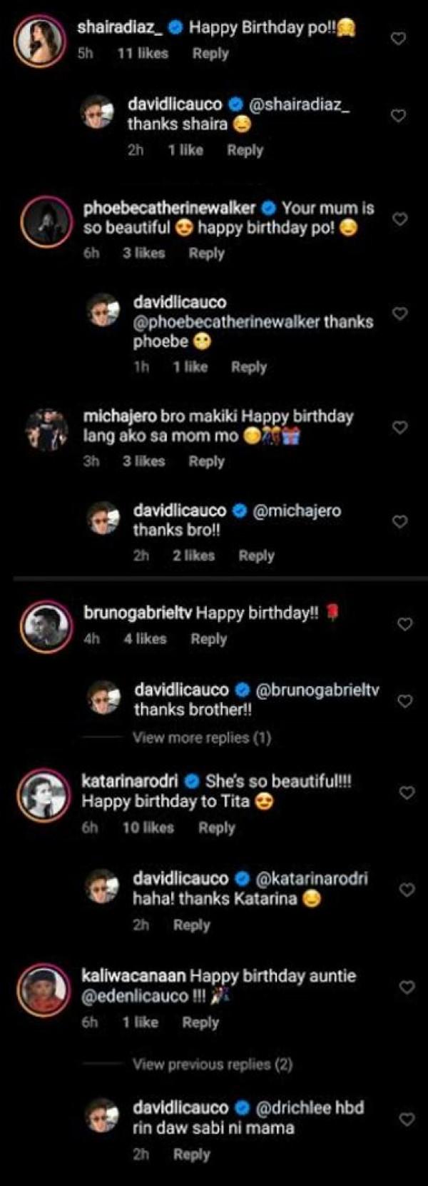 Several celebrities also sent their well-wishes to Eden Licauco including David's former leading lady Shaira Diaz, Bruno Gabriel, and beauty queen Katarina Rodriguez.