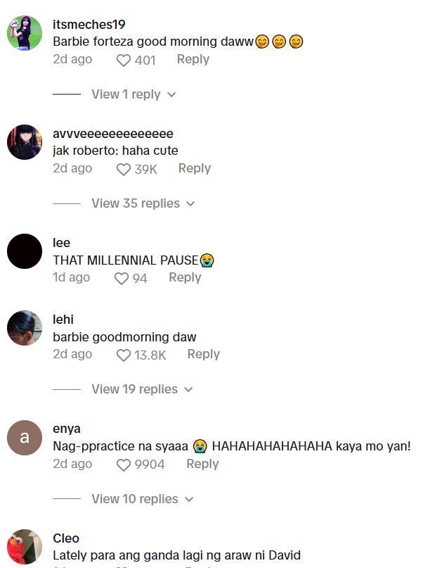 In the comments to the TikTok, netizens made very straightforward comments about David “practicing” to greet someone good morning.