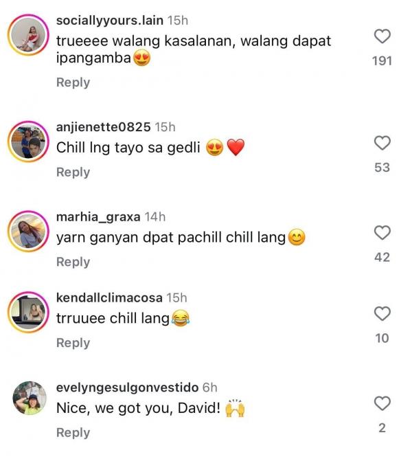 Sa naturang post, makikita ang solo picture ni David na mayroong simple caption na, “Chill lang.”