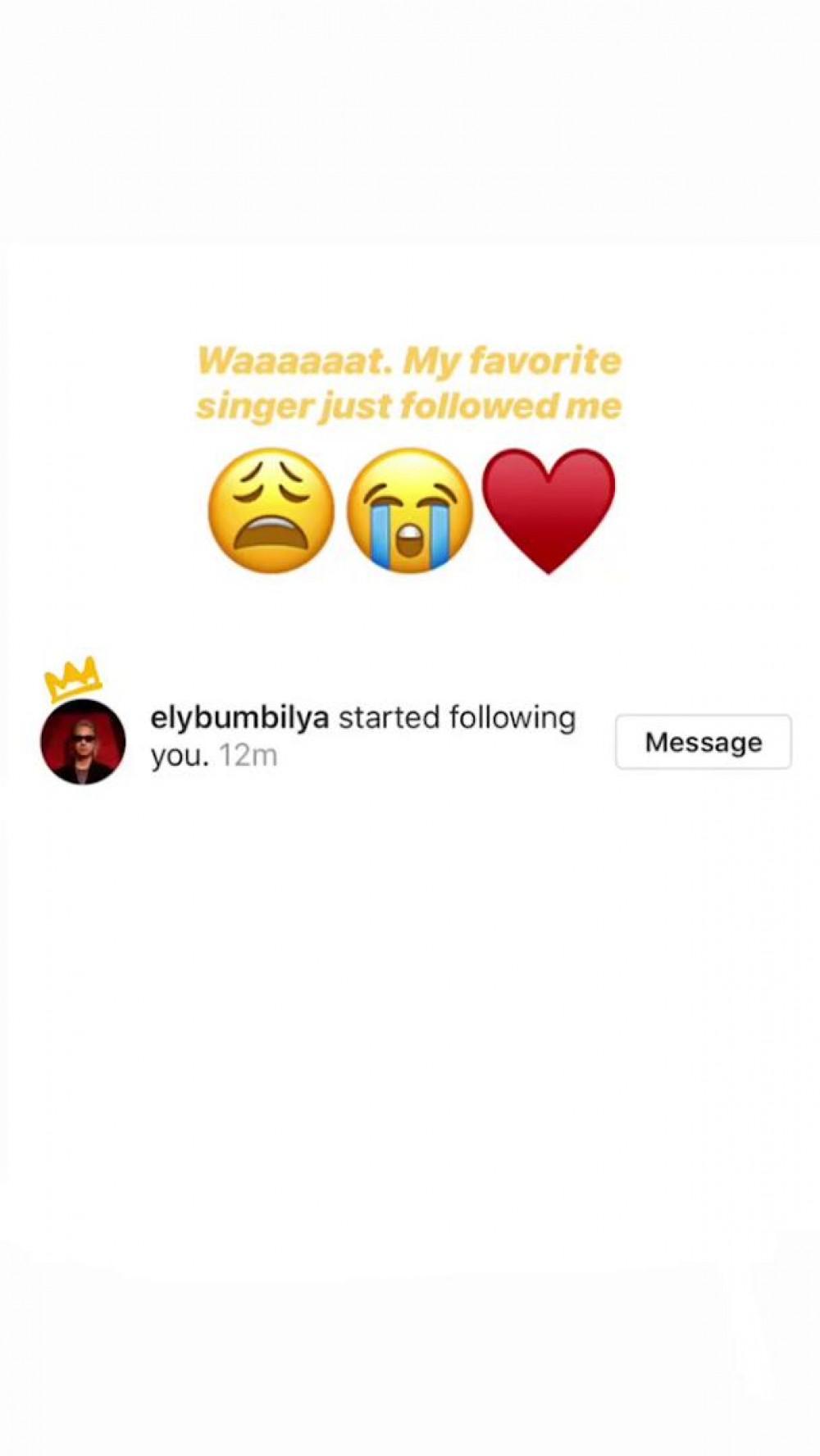 "Waaaaaaat," sulat ni Jillian. "My favorite singer just followed me."