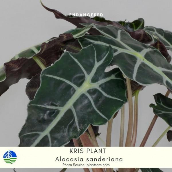 Those that are considered as threatened species are the Green Velvet Alocasia (Alocasia micholitziana), Kris plant (Alocasia sanderiana) and the Zebra Plant (Alocasia zebrina).