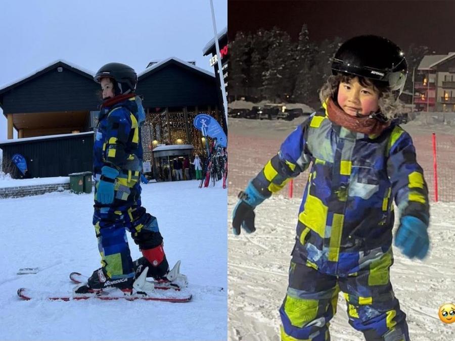 In a different post by Ellen, Elias can be seen confidently skiing on his own which proves that he is a quick learner.