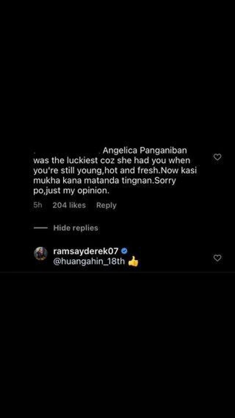 Among the flock of supportive reactions, one netizen commented saying, "Angelica Panganiban was the luckiest 'cause she had you when mukha ka na matanda [tingnan]. Sorry po, just my opinion."