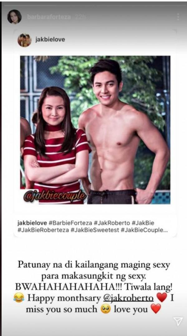 Sa Instagram Story ni Barbie noong Linggo, September 20, nag-post siya ng photo nila ng kanyang boyfriend kung saan makikitang topless si Jak.