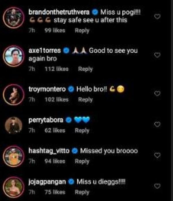 Several celebrities reacted to Diego's IG post and said that they were happy to see him back.