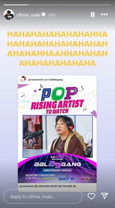 Maki has also seen the online poster of MIchael V. and posted his reaction on Instagram Story. It seems that he already loves this new parody song of the Kapuso ace comedian.